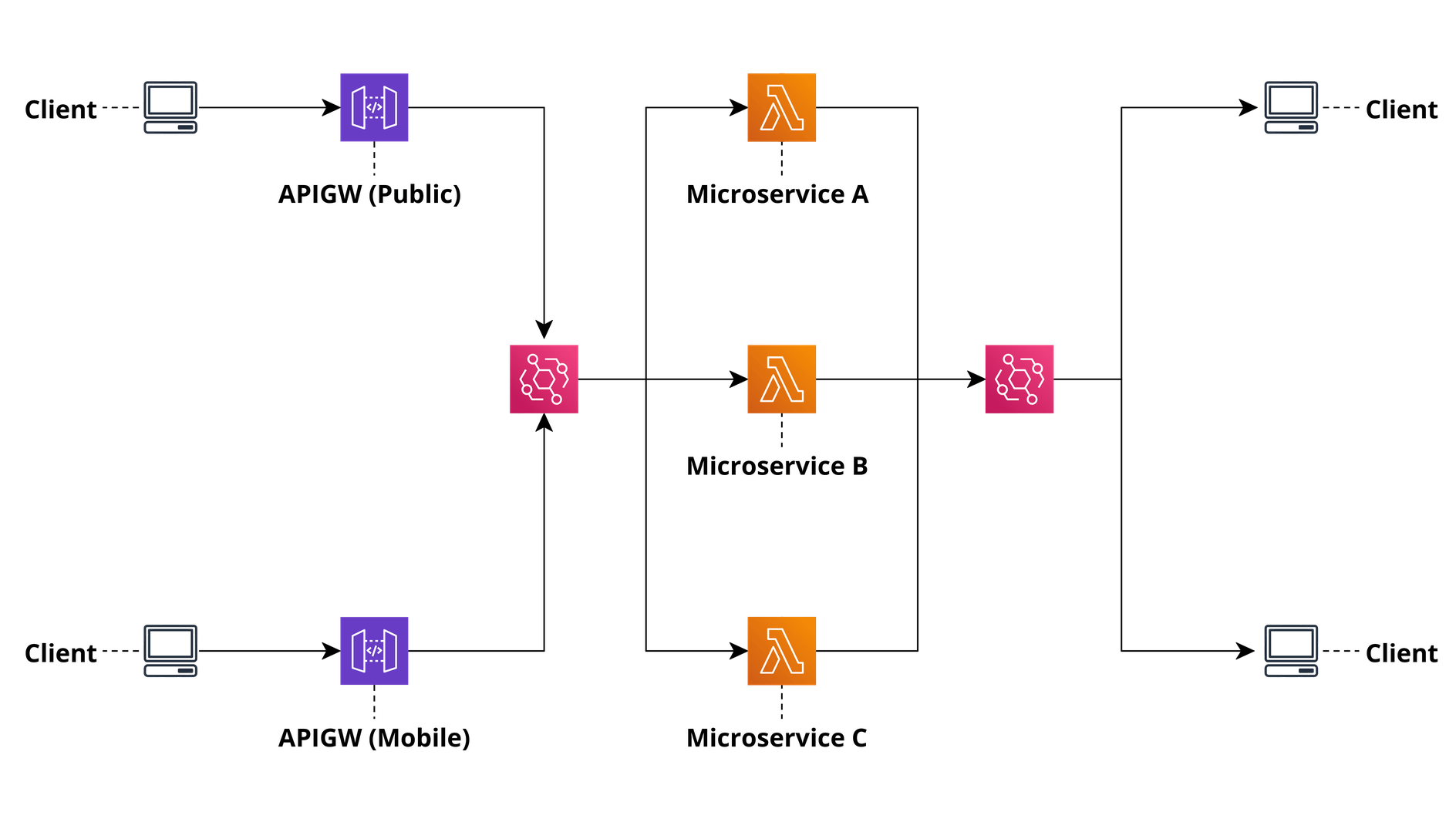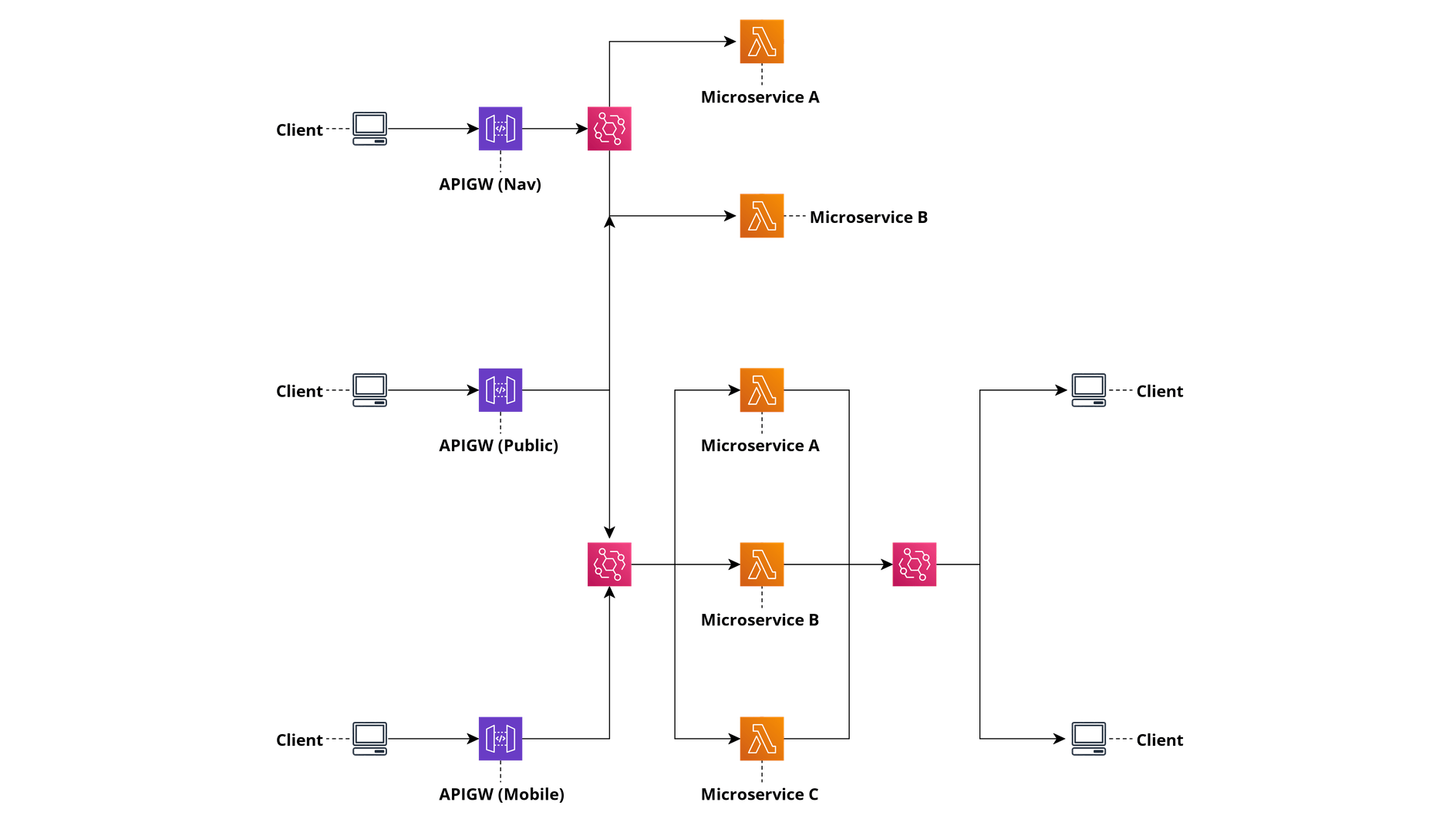 When you do need to communicate, the critical rule to follow is to avoid chaining multiple synchronous calls between microservices. This just means that the communication between microservices should be done by propagating data in parallel, preferably asynchronously, rather than in a synchronous series. As we are well aware chaining synchronous API calls is an anti-pattern as it introduces multiple points of failure as well as failure along the line of communication. If we refer to the Serverless Microservice Patterns documentation we can see that the API Gateway / Internal API, Aggregator and State Machine patterns would all fail as calls are chained.